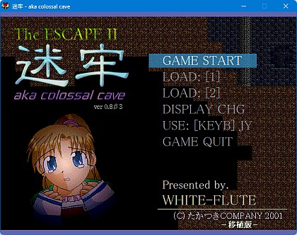 アドベンチャーゲームの開祖とされる作品は1976年に公開されたらしい"Adventure(aka colossal cave)"というソフトウェアです。初期の初期といえるコンピュータゲームであり、ゲームジャンルこそ違いますが、そのシンプル性を継承した洞窟探索作品として当時、迷牢のサブタイトルに使わせていただきました。ScreenShots
