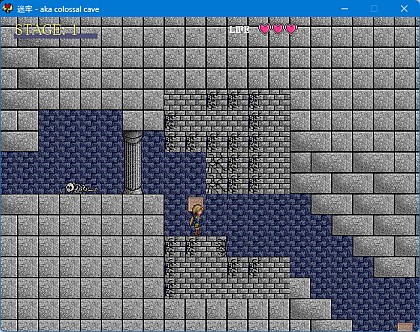本作「迷牢 -aka colossal cave-」は、FC作品「アトランチスの謎」「スーパーピットフォール」等を意識して開発したサイドビュー探索ACTです。ステージ数は100を越える、当時のフリゲとしては別格のゲームボリュームとなっています。2000年代当時の良質フリゲの定番として評価をいただきました。もっとも、2004年末に登場した「洞窟物語(Cave story)」によって「ジャンプACTの傑作」という立ち位置は持っていかれてしまいましたが、洞窟物語の登場までの4年弱の間、探索ジャンプアクションというフリゲジャンルを支えてきた作品と言えます。
